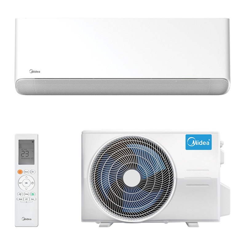 Midea MSFE-24N8D6-I / MSFE-24N8D6-O – это настенная бытовая сплит-система высокой производительности. Ее внутренний блок оснащен ионизатором, вентилятором, фильтром высокой плотности и широкоугольными жалюзи с перфорацией. Наружный блок выстроен на базе инверторного компрессора. Есть функции самодиагностики, самоочистки, теплого пуска, дежурного обогрева, таймера, локального микроклимата и пр.